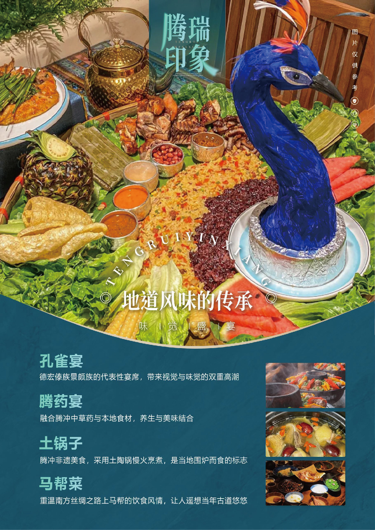 晚餐品尝独具特色的——孔雀宴,是云南省德宏州的代表性宴席。晚餐后,入住酒店。
