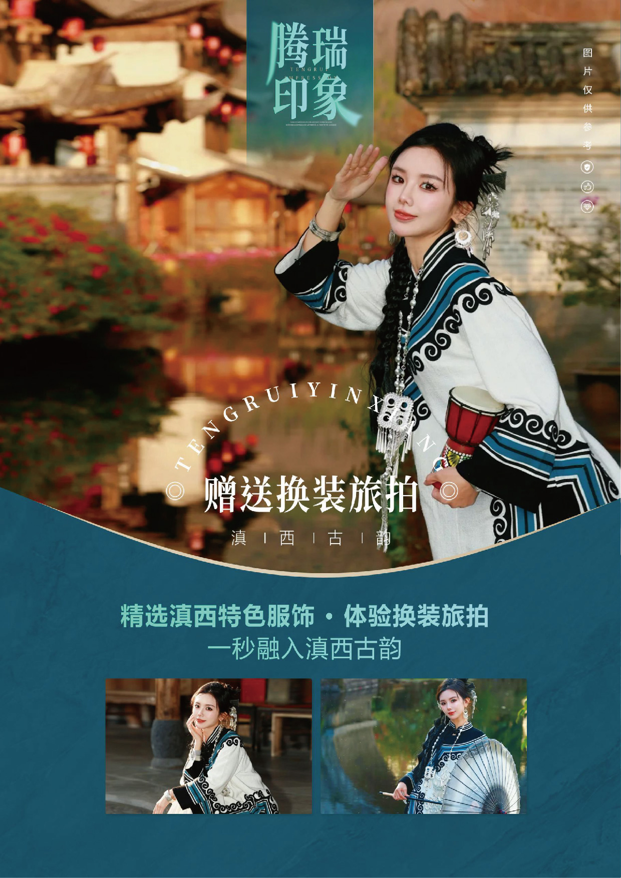 后游览【和顺古镇】(赠送和顺电瓶车,赠送项目,客人不参与费用不退)位于腾冲县城以西4公里处,始建于明代,因小河绕村而过故名“河顺”,后文人雅士取“士和民顺”之意而更名为“和顺”,根据所选套餐安排换装旅拍(含衣服,简易头饰,电子照片每人5张,不含化妆和造型。)