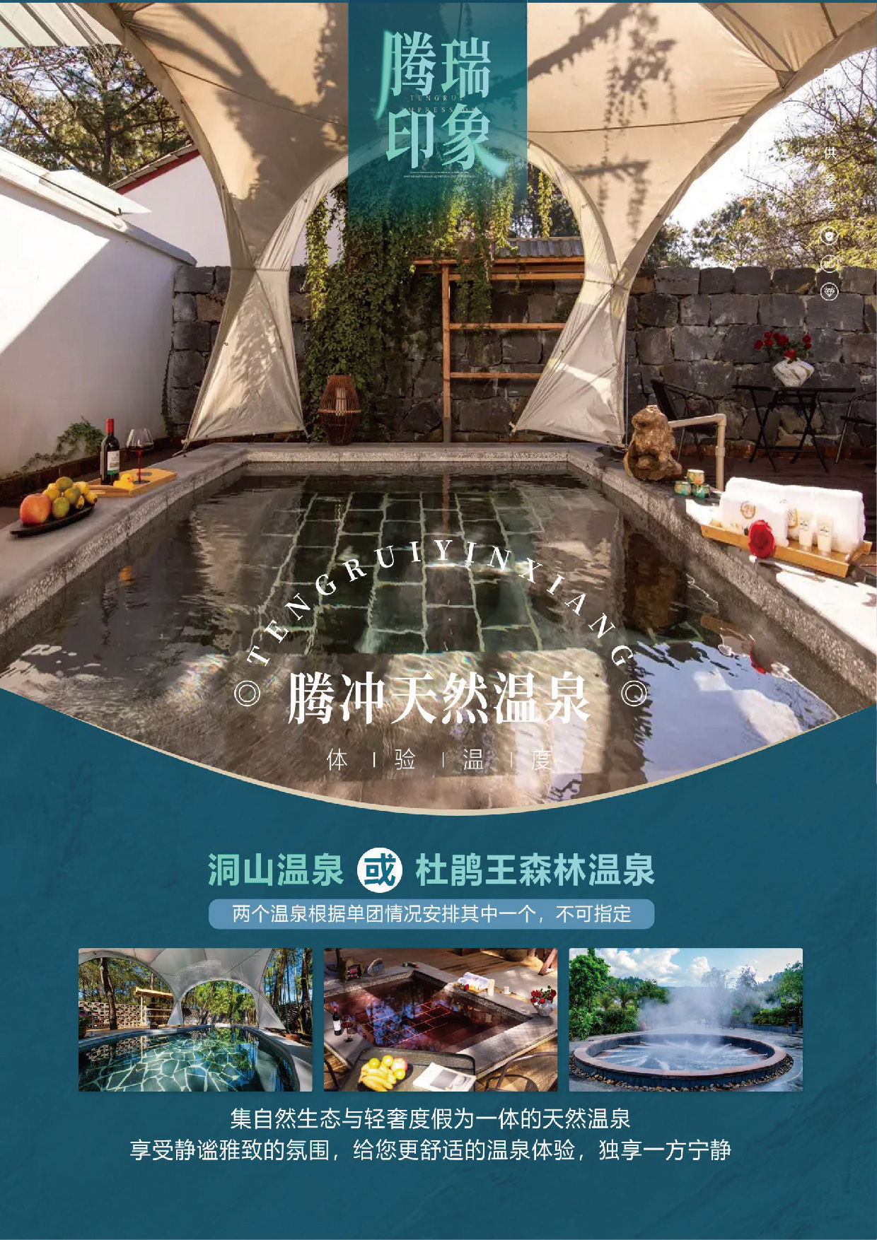 后根据行程安排温泉(自备泳衣),醉美"天然露天森林温泉—【洞山森林温泉】,洞山温泉的水清冽干净,像一块块形状不一的明镜,镶嵌在群山之中!16个室内泡池,27个室外泡池。成 人游泳池、儿童游泳池、室外沙滩、水上乐园、生态园区,休闲室外亭、餐饮美食等为一体的休闲 娱乐综合体,是各种休闲娱乐健身餐饮活动的好去处。无论欢聚一处,还是独处一室,全由你做主!徜徉在这样的池子中,可以细心感受到泡温泉带给身体那奇妙的变化,亦可以眺望眼前的无限风光!或【杜鹃王森林温泉】新建成于 2024 年初,距离和顺古镇 2.8km,10 分钟可抵达。温泉内设有 3 个分区,共 36 个露天泡池,高原原脉碳酸泉,温度舒适、富含多种矿物质。在这里您可以倾听鸟鸣、溪流和风的和谐之声,感受大自然的魅力在古木、温泉中舒缓疲惫的身心,让大自然的力量滋养您。)泡温泉需自备泳衣。